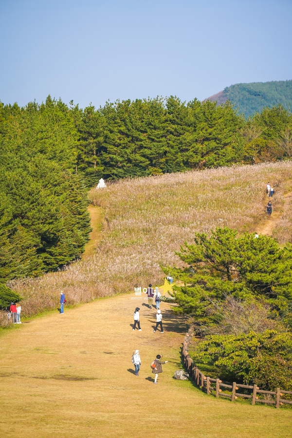 11월 제주도 여행코스 3박 4일 필수인 산굼부리는 편하게 억새를 볼 수 있는 곳입니다. 전망대에 오르면 파란 제주의 하늘과 멀리보이는 오름을 360도로 볼 수 있고 경사가 완만하고 관람로가 잘 조성 되어있어 체력에 자신이 없어도 부담없는 곳이라 자신할 수 있습니다.