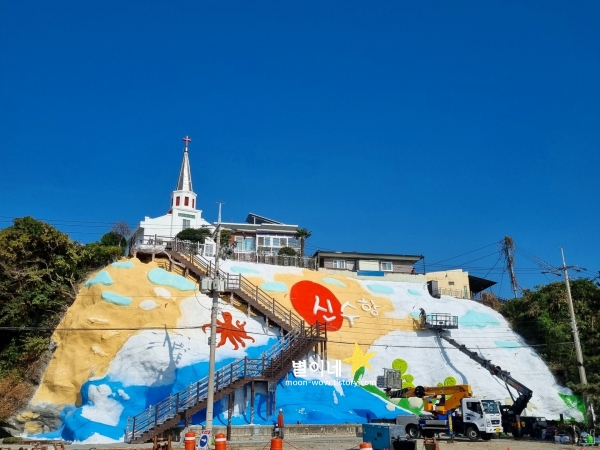 대포 어촌체험마을은 아름다운 뷰와 함께 사진 찍기 좋은 사천 가볼만한곳 베스트 10으로 마을 초입부터 조형물로 이어지는 길을 따라 걷는 동안 펼쳐지는 바다 풍경은 정말 인상적이었습니다. 방파제 끝에는 사랑의 불시착 촬영지로 유명한 얼굴 조형물이 있어 많은 사람들이 사진을 찍는 곳이에요.