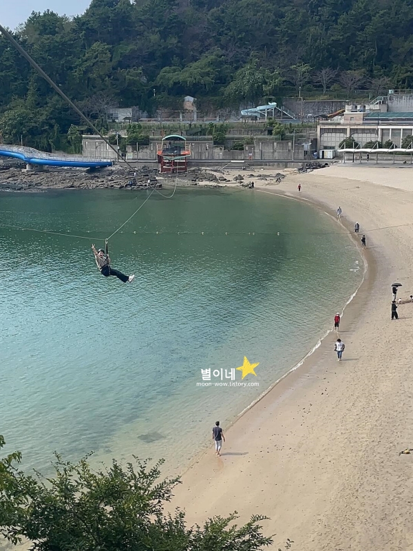 짚라인을 즐길 수 있는 액티비티도 있고 해변을 따라 걷는 동안 들리는 풀벌레 소리와 파도 소리가 더해져 힐링의 시간이 되었습니다. 숙박이 가능한 남일대 리조트와 사우나 시설도 있어 하루를 여유롭게 보내기에 좋았습니다.