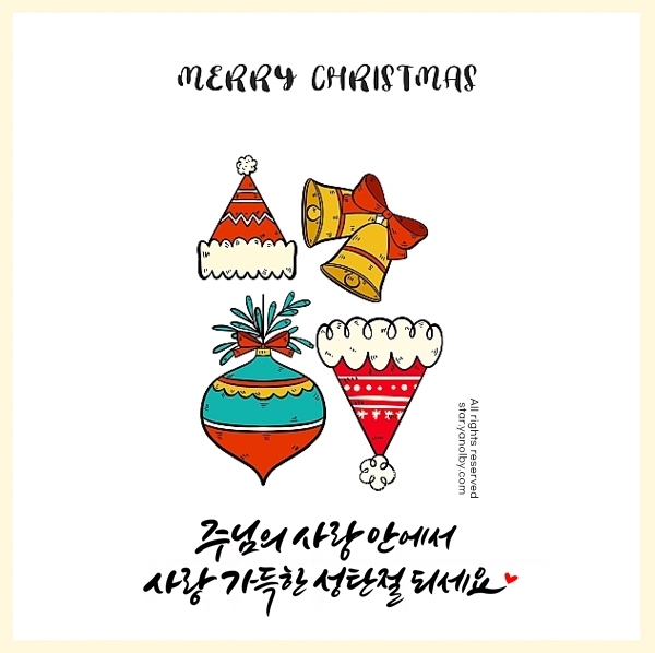 메리 크리스마스! 2024년 동안 많은 수고가 있으셨습니다. 2025년에는 더욱 주님의 평안과 축복이 함께하시기를 바랍니다. 사랑과 감사가 넘치는 성탄절 되시길 기도드립니다.