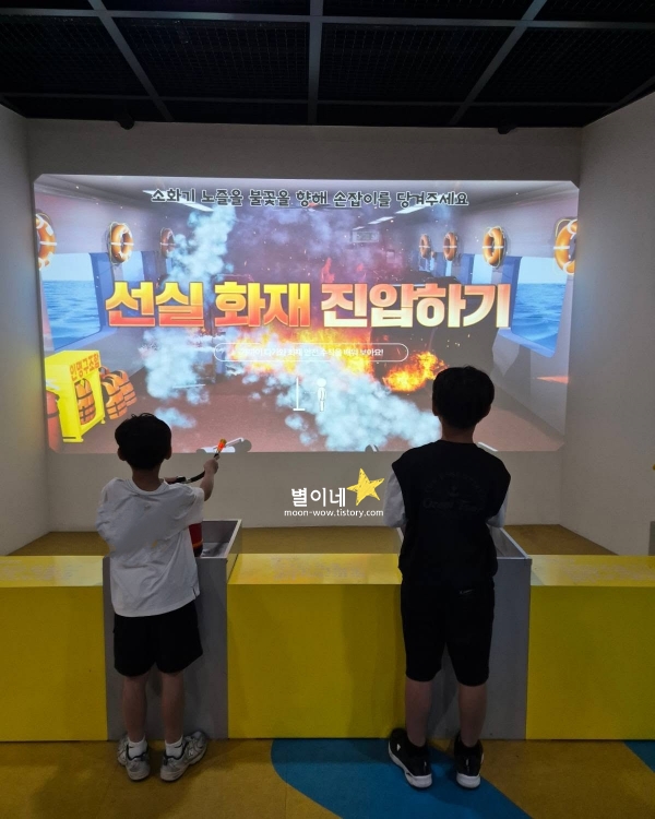 해양테마체험관은 함상공원과 함께 즐길 수 있는 체험 중심의 당진 실내 가볼만한곳 베스트 10으로 전시물을 보는 것에 그치지 않고 다양한 활동을 직접 경험할 수 있는 곳입니다. 입구에 들어서면 선박 탈출을 주제로 한 4D 체험이 먼저 눈길을 끕니다. 흔들리는 의자와 번개 효과, 구명정 체험까지 흥미를 더하며 몰입감이 최고였습니다.