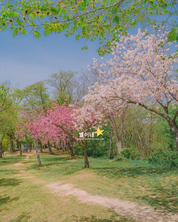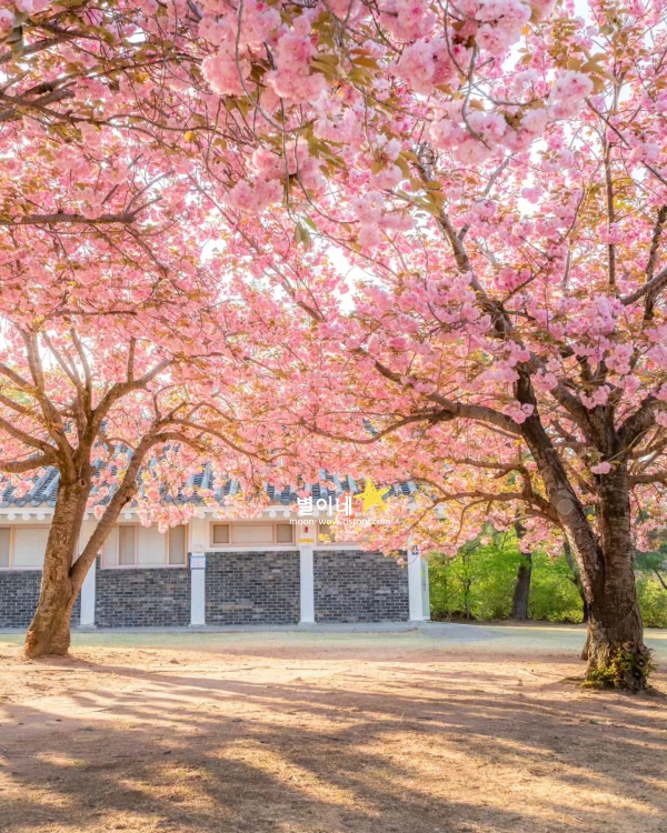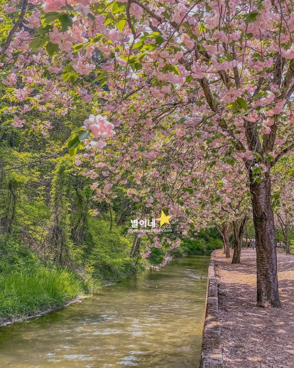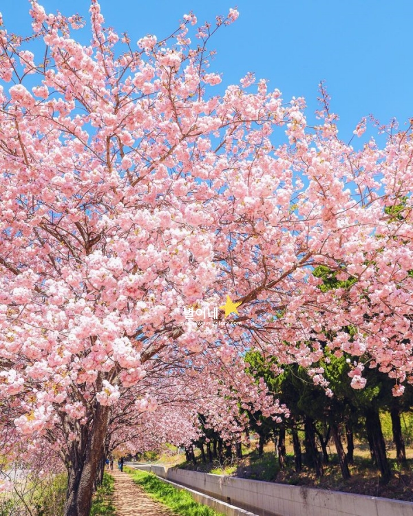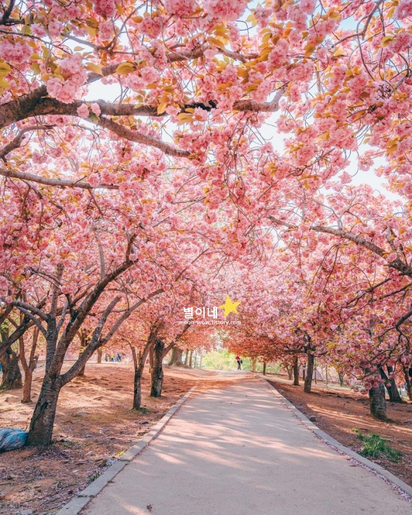 경주 봄에 가볼만한곳 베스트 10 4월 겹벚꽃 명소입니다. 보문관광단지로 향하는 길목에 자리한 숲머리 뚝방길은 4월이 되면 겹벚꽃으로 물듭니다. 널리 알려진 벚꽃 명소들과는 다르게, 한적한 분위기 속에서 천천히 걸으며 꽃을 감상할 수 있는 곳입니다. 길을 따라 걸을 때마다 탐스럽게 늘어진 겹벚꽃이 머리 위로 가득 펼쳐지고, 바람이 불면 꽃잎이 천천히 흩어지며 길 위에 내려앉는 모습이 눈길을 사로잡습니다.