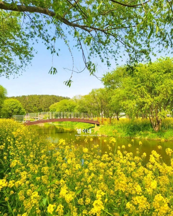 경주 봄에 가볼만한곳 베스트 10 강변을 따라 펼쳐지는 봄의 길 금장대 수변공원을 찾게 되는 이유는 4월이면 강변을 따라 유채꽃이 가득 피어나면서, 온통 노란빛으로 물드는 길을 걸을 수 있기 때문이죠. 강을 따라 산책로가 길게 이어져 있어, 여유롭게 걸으며 유채꽃이 바람에 흔들리는 모습을 감상하기에 좋습니다.