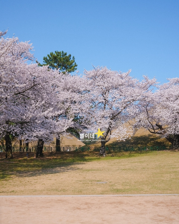 이곳을 가장 잘 즐기려면 이른 아침이 좋습니다. 아직 사람이 붐비지 않는 시간에 걷는 돌담길은 바람에 흩날리는 벚꽃잎까지 온전히 느낄 수 있게 해주죠. 벚꽃이 흐드러진 길을 따라 걷다가, 대릉원 내부까지 이어지는 산책로를 함께 둘러보는 것도 좋습니다. 신라 왕릉이 자리한 고분군을 배경으로 피어난 벚꽃을 바라보는 순간, 경주의 시간은 과거와 현재가 함께 흐르는 듯한 느낌을 주니까요.
