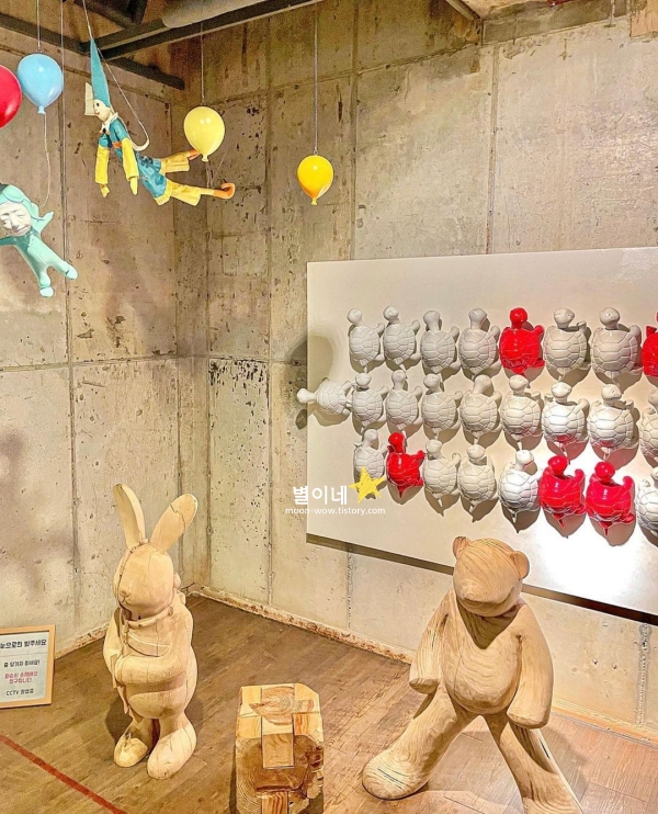 하지만 주차장은 다소 협소한 편. 주말에는 만차 상태라 길가에 차를 세우고 언덕을 올라와야 했던 게 아쉬웠다. 그래도 한 걸음 한 걸음 올라갈수록 기대감이 커졌다. 전시된 작품들을 보고 있으면, 일상의 사소한 것들도 예술이 될 수 있다는 걸 깨닫게 된다. 쇠파이프, 노끈, 조화 같은 평범한 재료들이 감각적인 공간으로 재탄생하는 걸 보면서 ‘이런 게 예술이구나’ 싶었다.