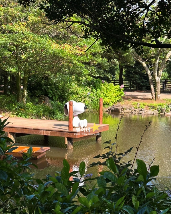 성산에서 조금 벗어난 조용한 언덕 위, 스누피가든은 만화 속 풍경을 현실로 옮겨놓은 듯한 곳이에요. 정원 안엔 캐릭터 조형물들이 툭툭 놓여 있고, 걷는 동안에도 과하게 꾸며진 느낌 없이 배경처럼 함께 있어요. 5월엔 들꽃이 하나둘 피기 시작하고, 풀숲 사이에서 캐릭터들이 마치 진짜 그 자리에 있던 것처럼 자연스럽게 보이죠. 햇살이 강한 날에도 흰 건물과 초록 잔디 덕분에 시선이 편안하고, 바람이 가볍게 불면 정원이 조금 더 느슨해져요.