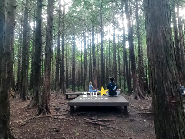 거리 및 코스: 머체왓 숲길 입구부터 데크길~숲길 순환 코스로 약 3.5km / 경사 거의 없음