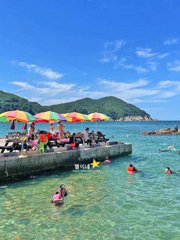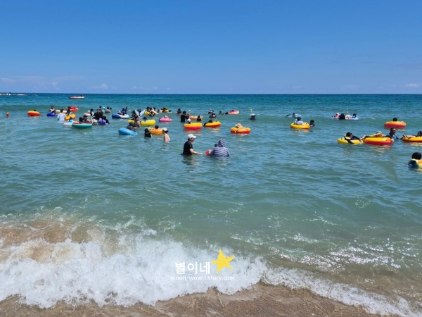 성수기라도 아침 일찍 도착하면 여유롭게 주차할 수 있고, 물놀이는 얕고 깊은 구간이 나뉘어 있어 초보자나 아이도 안전하게 즐길 수 있어요. 스노클링 장비는 인근 펜션이나 카페에서 대여 가능한 곳도 있고 바다 옆에 텐트를 펴거나 차량에서 쉬는 차박족도 많고, 저녁이면 노을이 온 해변을 붉게 물들여 하루의 끝까지 풍경이 살아 있어 다양한 물놀이와 힐링까지 가능한 여름의 바다 쉼터랍니다.