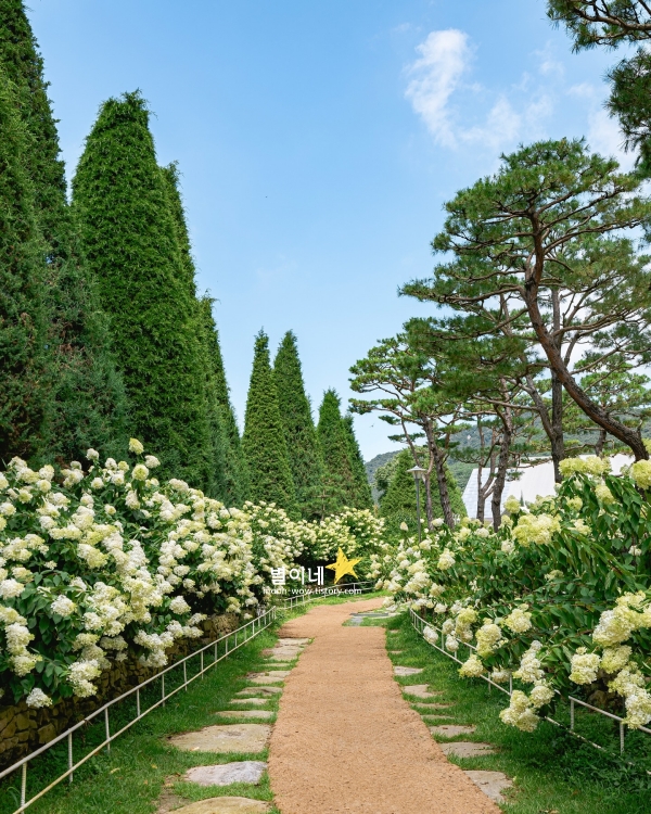 도레도레 강화점은 유럽 수국이 활짝 핀 정원이 돋보이는 8월 여행지 추천 서울 근교 감성 카페예요. 입구부터 수국들이 줄지어 피어 이국적인 분위기였고 카페 내부는 화사한 인테리어와 통창 너머 정원 뷰가 어우러져 여유로운 시간을 보내기 좋습니다. 무지개 케이크와 음료 가격대는 다소 있지만 사진과 맛 모두 만족스러웠고, 카페 이용 영수증이 있으면 주차는 무료이며 영수증이 없을 경우 5,000원이 부과됩니다. 수국은 7월부터 8월 말까지 가장 예쁜 시기를 맞이하며 8월 중순까지 정원이 가장 화사하게 빛나요.