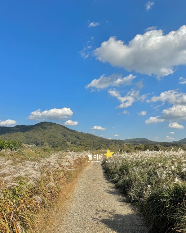 억새밭 사이로 걷다 보면 나도 바람결에 섞여 흐르는 기분이 들었고 햇살이 억새에 닿으면 물빛처럼 은은하게 반짝여서 계속 걷고 싶어집니다. 억새뿐 아니라 갈대, 남한강 강물, 주변 숲까지 함께 어우러져서 풍경 자체가 한 폭의 수채화처럼 펼쳐지죠. 걷다 보면 도시에서 들리지 않던 바람 소리, 풀벌레 울음, 발 아래 자갈 부딪는 소리까지 들리며 마음이 맑아지는 걸 느끼실 수 있을 거예요.