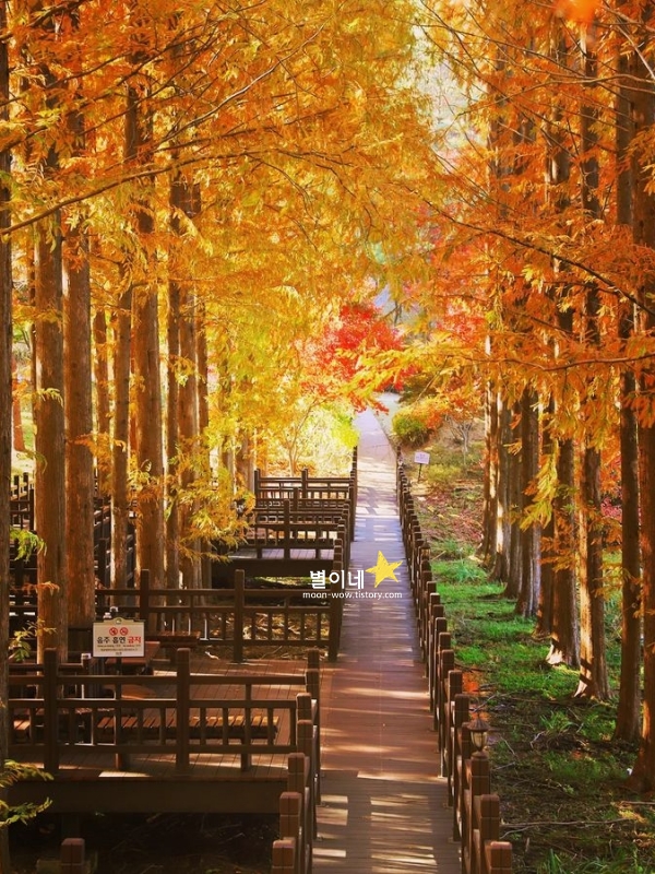 제가 걸어보니 숲에 금빛 필터를 씌운 것 같았고 걷는 내내 나무 향기와 햇살이 어우러져서 머리가 맑아졌습니다. 걷기 길은 흙길과 포장길이 섞여 있어 어르신이나 아이들도 함께하기 좋아요.