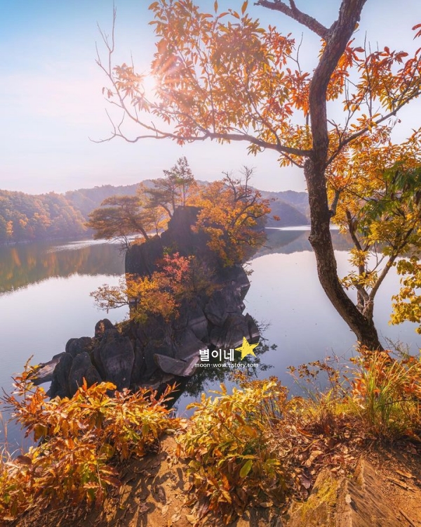 가을이 되면 이곳의 절벽과 호수는 황금빛 단풍과 함께 병풍처럼 물결치고, 잔잔한 수면에 비치는 반영은 마음을 고요하게 만들어줘요. 절벽 위에서 바라본 대청호가 은빛 호수처럼 느껴졌고 정자에서 내려다보는 풍경이 눈을 뗄 수 없을 만큼 아름다웠습니다. 단풍 절정은 10월 중순 무렵부터 말까지이며, 오전 시간대에 방문하면 인파 없이 여유롭게 풍경을 즐길 수 있어요. 추소리 마을을 따라 이어지는 산책길은 짧지만 다채롭고, 숲길을 걷다 보면 호수와 절벽이 번갈아 나타나며 시선을 사로잡아요. 자연이 선물한 가장 조용하고 평화로운 풍경 속에서 걷고 싶다면, 이곳은 꼭 가봐야 할 가을 충북 여행지예요.