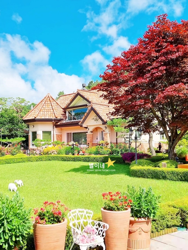 원래 개인 별장이었다가 정원을 본격적으로 가꾸어 2014년부터 일반인에게 개방한 이력이 있는데다, 2021년에는 '양평정원 5호'로 선정되며 아름다운 민간 정원으로 인정받은 곳입니다. 넓은 대지에 유럽 시골 마을 같은 감성을 풍기는 정원 카페로, 계절마다 다양한 자연의 아름다움을 즐길 수 있습니다.