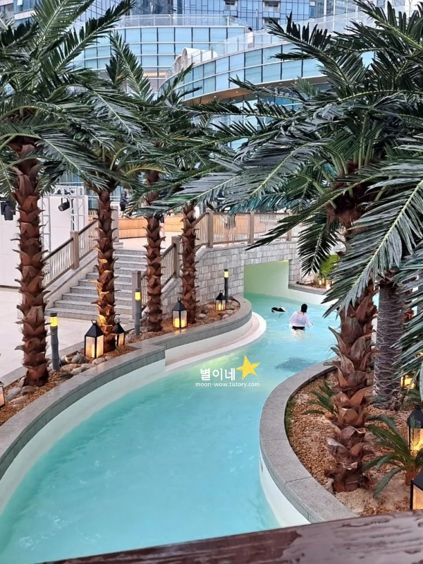 워터파크, 그다음에 사우나랑 찜질 만족도가 높았습니다. 인피니티풀 쪽으로 나가면 겨울 바람이 불지만 물에 들어서는 순간 미온수에 몸이 푹 풀리면서 바다를 그냥 눈으로 마시는 기분이 들어요.