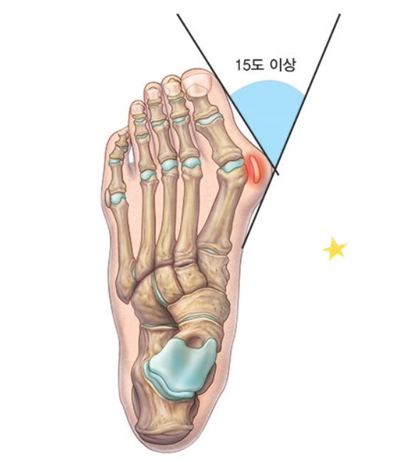 무지외반증이란 엄지발가락(무지)이 새끼발가락 쪽으로 휘면서 내측 돌출 부위가 신발에 반복적으로 마찰되어 통증과 염증을 유발하는 질환입니다. 원인으로 하이힐과 같이 굽이 높고 볼이 좁은 신발을 장시간 착용하면서 발생한다고 알려져 하이힐병이라고도 부르며 유전적인 요인이 원인인 경우도 있습니다.