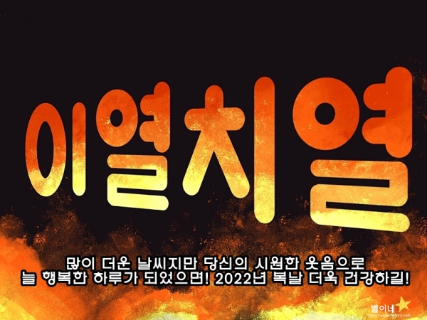 6. 장마가 끝나지 않아 불쾌지수도 높습니다. 장마가 끝나면 무더위가 기승을 부리겠지요. 웃다보면 즐거워지는 것이고 즐거워지면 모든 일이 잘 풀린다고 합니다. 모두를 지치게 만드는 더운 날씨에도 당신은 늘 행복하기를 바랍니다. 2022년 초복, 삼계탕 꼭 드시고 항상 건강하십시오.