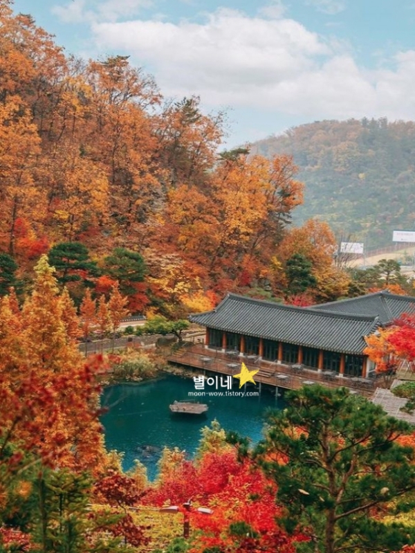 경기도 포천, 고모리 산성과 죽엽산 사이 고모 저수지를 중심으로 산책길과 작은 상점이 있고 카페 거리도 있는데 그중 포천 가볼만한곳 베스트 10으로 한옥카페 부용원이 있어요. 카페에서 쉼을 누리고 고모저수지 산책도 할 수 있는 경기도 가을 가볼만한곳 베스트 10 입니다.