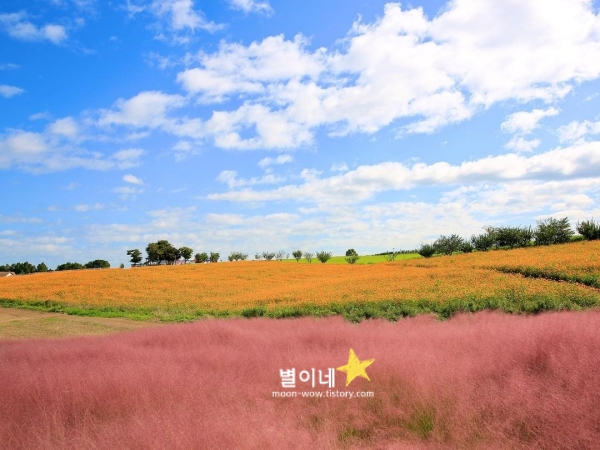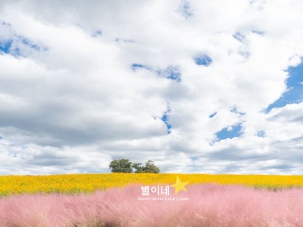노랑코스모스와 핑크뮬리의 황홀경으로 이 가을 정말 낭만적인 경기도 가볼만한곳 베스트 10 안성 팜랜드가 있습니다. 노랑코스모스 밭 아래로는 핑크뮬리까지 만날 수 있습니다. 놀랍도록 넓은 코스모스 군락지는 천천히 꽃길을 걷는 시간을 만들어주고 노랑코스모스 밭을 지나면 핑크뮬리 언덕이 있습니다.