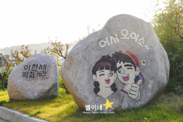마을 길을 따라 들어선 250m 길이 담장은 이현세 화백의 작품 주인공 모습이 그려졌있었는데 '떠돌이 까치'와 '공포의 외인구단' 등, 80~90년대 추억 속 인기 만화 주인공들입니다. 저는 떠돌이 까치만 알겠더라구요.