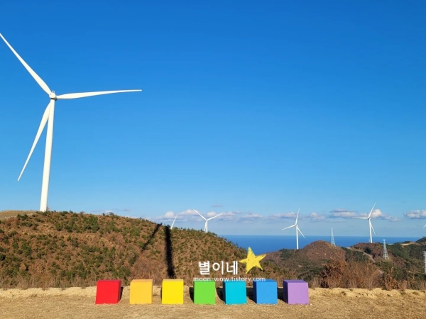 2007년 대규모 산불 피해로 훼손된 산림을 복구하여 친환경 에너지를 생산하는 곳으로 탈바꿈하였습니다. 아름다운 산 속에 앙증맞은 포토존이 가득하고 바다도 보입니다. 해질녘 즈음 노을빛이 가득한 하늘을 바라보며 숨이 탁 트이는 맑은 공기와 시원한 바람과 함께 풍력발전소의 웅장함도 느낄 수 있었습니다.