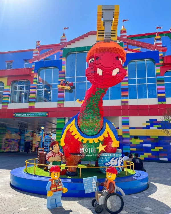 입구부터 알록달록한 색감과 블럭모양 건물들이 가득해서 완전 장난감 속 세계로 들어가는 기분이고 레고시티, 해적의 바다, 닌자고월드, 미니랜드, 브릭토피아, 레고 캐슬, 브릭스트릿까지 총 7개의 테마로 나뉘어져있습니다. 구역마다 다른 테마를 구경하는 재미가 쏠쏠하답니다