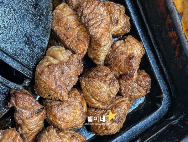 3대가 덕을 쌓아야 갈 수 있다는 최자맛집으로 하루에 11팀만 받는, 예약이 극악의 난이도지만 꼭 한번쯤 방문해볼만한 돼지고기 맛집입니다. 두 달 넘게 발효시킨 고기를 장기간 숙성하고, 달달짭쪼롬한 양념에 구워주시는데 정말 독보적인 맛입니다. 어찌나 부드러운지 몇 번 안 씹어도 사르르 넘어가는 촉촉한 고기에 매콤했던 김치의 조합이 최강이었습니다.