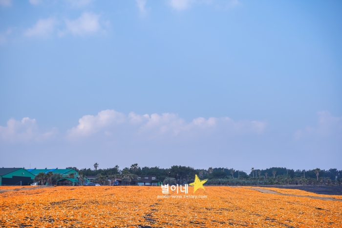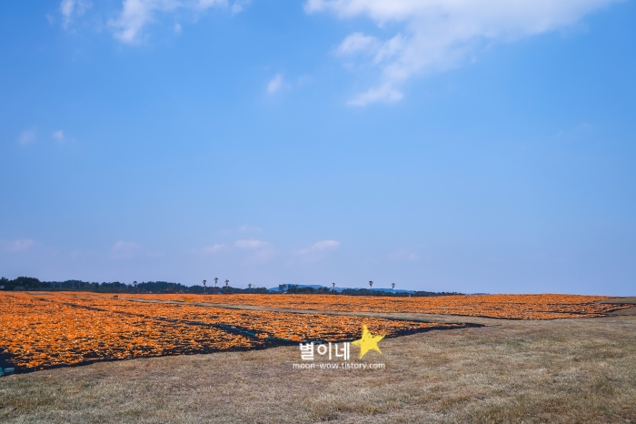 귤림추색을 12경 중 4경으로 꼽았는데 바로 소담스럽게 익어가는 귤 풍경이 4경이며 신풍신천목장은 감귤 껍질을 넓은 목장에서 말리는 독특한 풍경을 보여주어 특별한 순간이 될 겨울 제주도 3박 4일 가족여행코스입니다. 목장에 들어가면 끝이 안 보일 정도로 넓고 푸른 바다와 접해져 황금빛이 도는 일몰이면 황홀합니다. 영화 <내 생에 봄날>, <각설탕>의 촬영지였습니다.