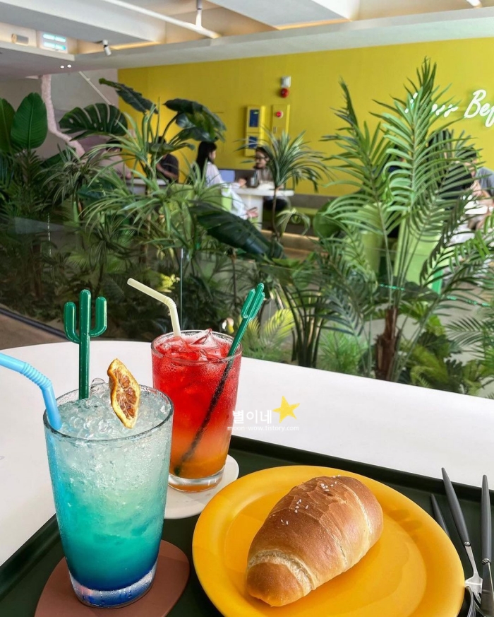 산방산 뷰도 신비롭고 노랑노랑한 인테리어 때문에 사진이 넘 예쁘게 나와서 겨울 제주도 아이와 가볼만한곳으로도 최고입니다. 흐린 날씨도 청명해보이는 효과가 있습니다. 뷰맛집은 뷰만 맛집이고 음료는 별로인 경우들이 많았는데 엘파소는 베이커리, 음료 모두 맛나서 더더욱 좋아요!! 엘파소 시그니처 엘파소페너!! 크림 미친맛이니까 꼭 드세요. 오션블루도 시럽 아낌없이 듬뿍 넣어줘서 달달하니 맛이 좋습니다.