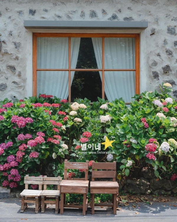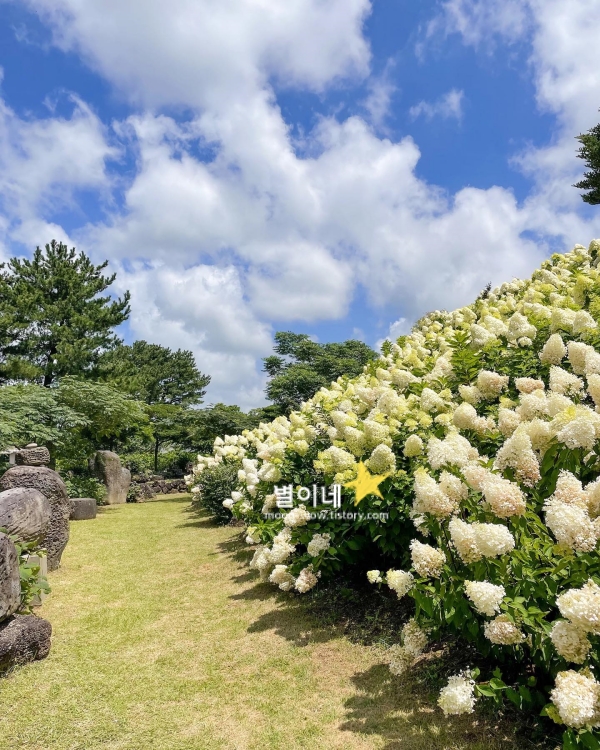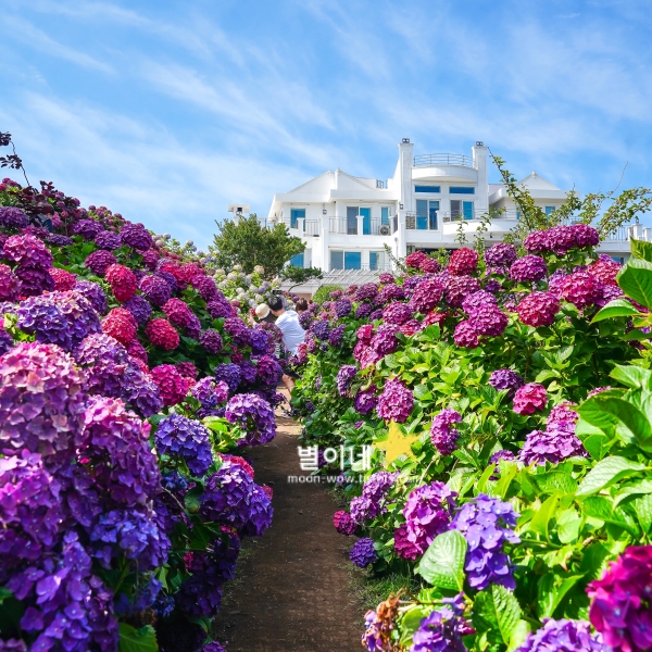 이국적인 건물과 함께 수국을 배경으로 사진을 찍으면 외국에 온 듯한 느낌을 받을 수 있는 6월 제주도 여행 가볼만한곳 10곳입니다. 마노르블랑에 오면 마치 외국 공주님이 된 것 같은 기분이 들더라고요! 이곳은 정말 사진 찍기 좋은 장소라 인생샷을 남기기 딱이에요.