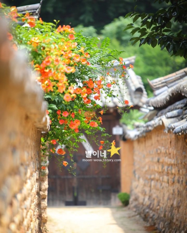 붉은 흙벽을 타고 내려온 능소화가 참 아름답고 예쁜 대구 남평문씨본리세거지는 조용하고 평화로운 분위기 속에서 전통 한옥의 아름다움을 느낄 수 있는대구 근교 가볼만한곳 베스트 10 곳입니다.