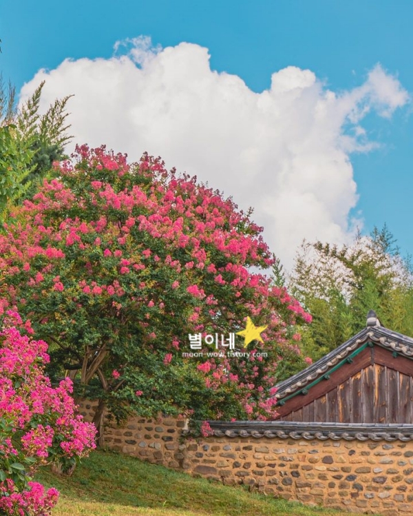마을을 걸으며 옛 정취를 느끼기에 좋고, 담장 너머로 보이는 능소화와 배롱나무가 아주 인상적입니다. 특히 여름에는 능소화가 피어 담장을 따라 아름다운 풍경을 만들어 줍니다. 마을 곳곳에 목화밭과 보호수가 있어 자연의 아름다움과 역사적 가치를 동시에 느낄 수 있습니다.