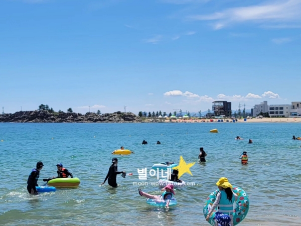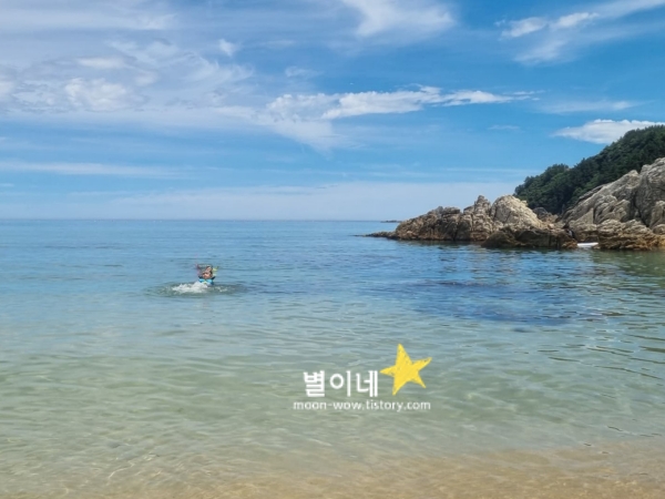 삼척 신남해수욕장은 한적하고 깨끗한 바다로, 물놀이와 스노클링을 즐기기에 좋은 여름에 강원도 여행 갈만한곳입니다. 바닷물이 맑아 작은 물고기와 해초, 성게 등을 관찰할 수 있으며, 갯바위 주변에서는 스노클링을 즐길 수 있습니다.